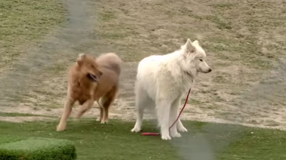 In a sweeping upward motion, quickly pull the dog’s leg from under him, while pushing in another way, as soon as the dog is on his back, grab the other leg with your free hand so that you are holding both legs of the dog firmly.